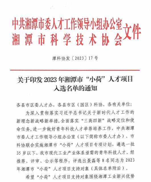 據悉,湘潭市“小荷”人才項目是為全面貫徹落實中央、湖南省“三高四新”戰(zhàn)略、省市人才工作會議精神,進一步做好青年科技人才工作而開展的。重點支持在企業(yè)科研生產一線投身電子信息、新材料、新能源與節(jié)能以及新一代信息技術等領域的青年科技人員,項目將實行精準施策,采取專家培養(yǎng)指導、搭建交流平臺、暢通交流渠道等方式,支持青年科技人員結合個人專業(yè)和上述產業(yè)領域進行科研和創(chuàng)新,旨在遴選一批35歲以下、現(xiàn)代工業(yè)產業(yè)體系亟需的各類青年科技人才。